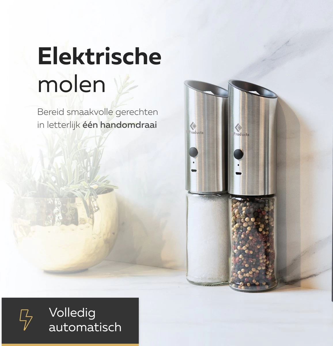 De tijd dat je handmatig peper en zout maalde, is geweest. Deze volledig elektrische peper- en zoutmolen wordt door zwaartekracht geactiveerd, draai hem simpelweg gewoon ondersteboven en bestrooi jouw lievelingsmaal met versgemalen peper, zeezout of andere kruiden.