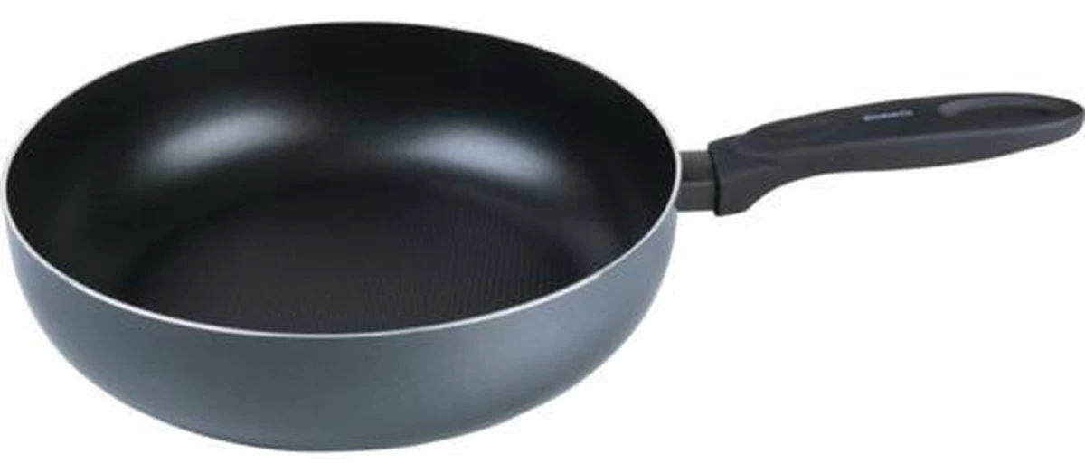 Comfortabele, zwarte soft touch greep, hittebestendig antikleef, bestaande uit 2 lagen, gemakkelijk te reinigen.