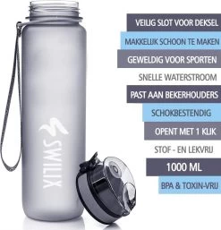 Swilix ® Drinkfles – 1 Liter – Drinkfles Met Tijdmarkering – Grijs