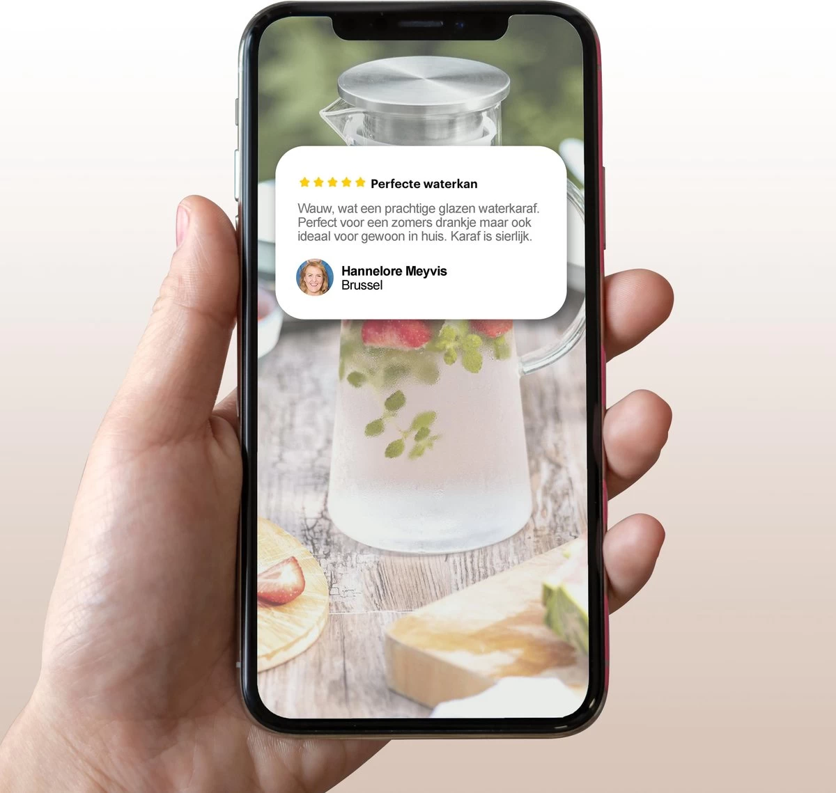 De waterkaraf met deksel is hittebestendig tot 150°C en daarmee uitermate geschikt voor het opslaan en serveren koffie, thee en glühwein bijvoorbeeld. Maar ook voor frisse drankjes op zomerse dagen is deze glazen waterkan uitermate geschikt. “Naast het vullen met (fruit)water, is de handige schenkkan ook te gebruiken voor bijvoorbeeld vruchtensappen, ijsthee, limonade, wijn, cocktails en vele andere dorstlessers.”