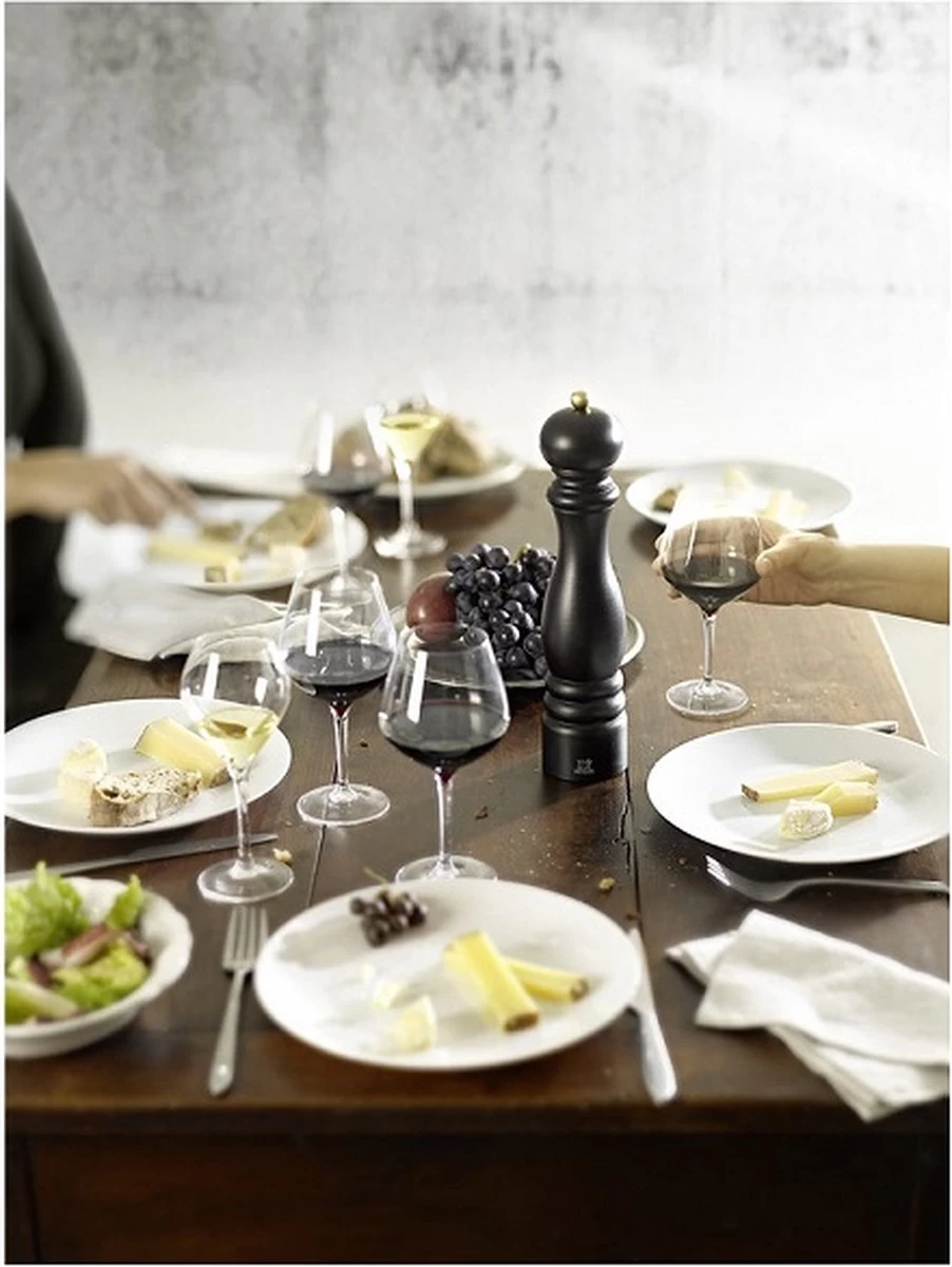 Deze Peugeot pepermolen ‘Paris’, gemaakt van gelakt beukenhout, is het klassieke, meest bekende model van Peugeot. De pepermolen is voorzien van het unieke u-select systeem, waarmee de grofheid van de maling traploos en nauwkeurig wordt ingesteld door de ring aan de voet van de molen te draaien. De molen is uiteraard voorzien van het unieke Peugeot maalwerk. Peugeot heeft voor iedere specerij een eigen maalwerk, dat het beste uit de specerij haalt. Het Peugeot maalwerk is gemaakt uit gehard en gesmeed staal. Op het functioneren van het maalwerk geldt maar liefst levenslange garantie. De molen wordt compleet geleverd met peperkorrels.