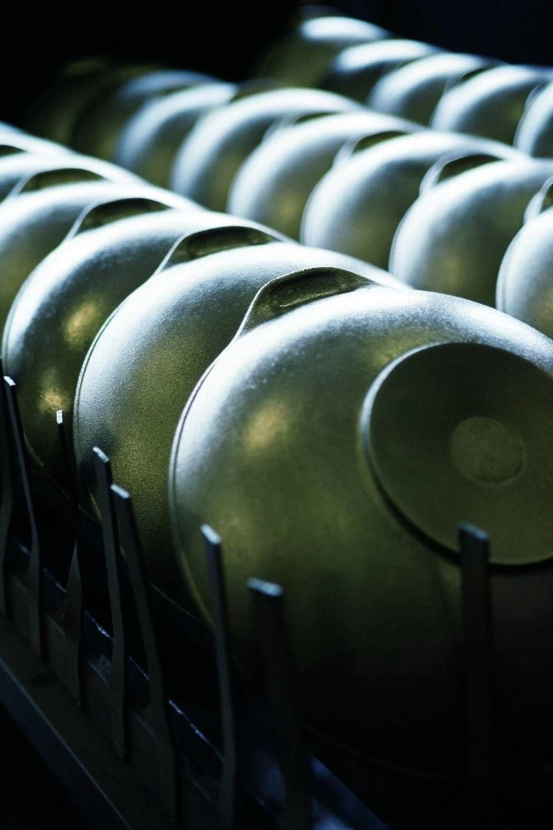 - Handgeslepen randen rond de pan