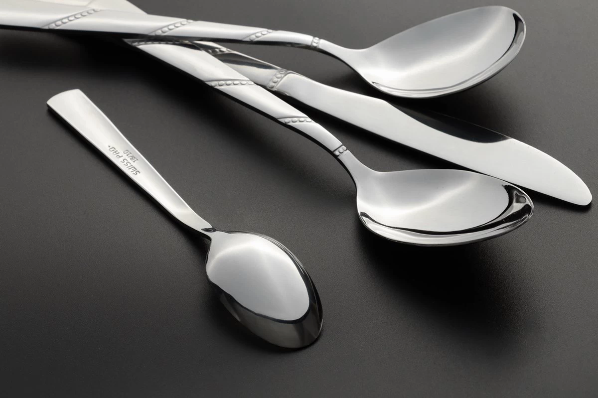Met de Swiss Pro+ 72 delige roestvrijstalen bestekset geleverd in luxe koffer met cijferslot heb je altijd het juiste bestek in de keuken. Deze Swiss Pro+ roestvrijstalen bestekset is geschikt voor 12 personen en is uitgevoerd met een mooi patroon.