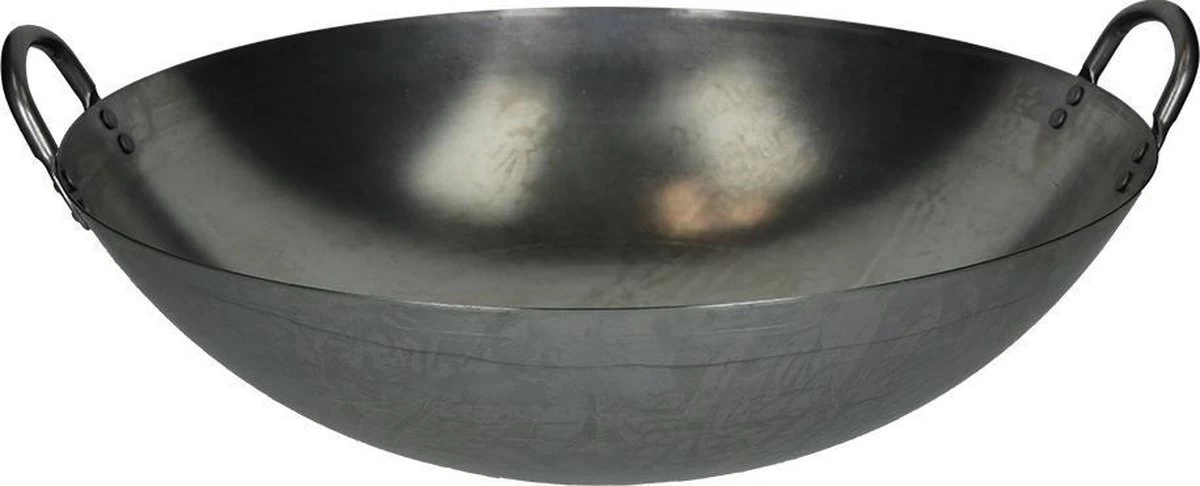 De wok (Kantonees woord voor “kookpot”) is ontworpen om zo snel mogelijk eten te bereiden. Deze traditionele, Chinese wok is gemaakt van plaatstaal.